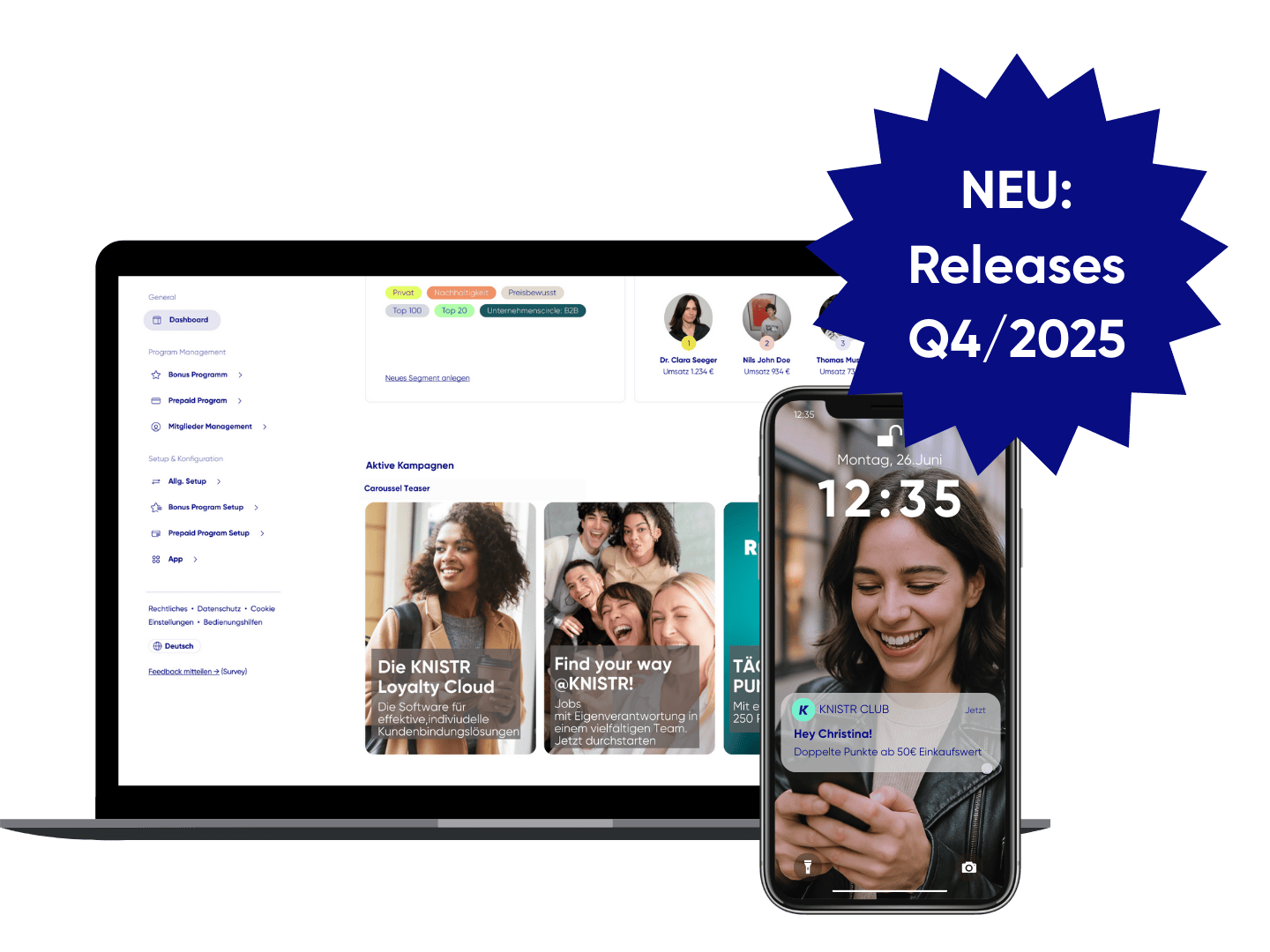 Unsere KNISTR Cloud-Produkte entwickeln sich kontinuierlich weiter. In regelmäßigen Abständen veröffentlichen wir neue Features, Optimierungen und UI-Verbesserungen, die unsere Loyalty- und Giftcard-Lösungen noch leistungsfähiger, flexibler und intuitiver machen.